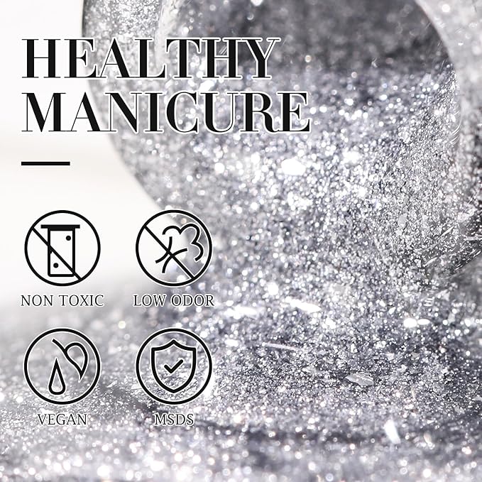 - Easy Application for Beginner :This glitter gel nail polish set need to be cured under LED nail lamp. These need to be cured under UV or LED Lamp for 60-120s. Please shake the bottle or warm it with hot water before use especailly in cold weather, to acheive a better effect.