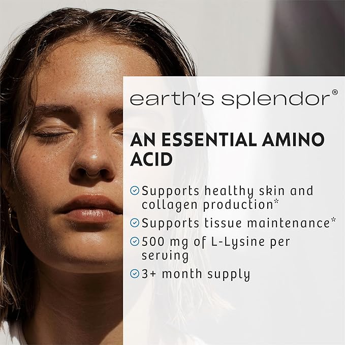 - Supports Collagen & Tissue Health – Earth's Splendor L-Lysine 500 mg promotes collagen production, supporting healthy skin, joints, and connective tissues for a strong body.