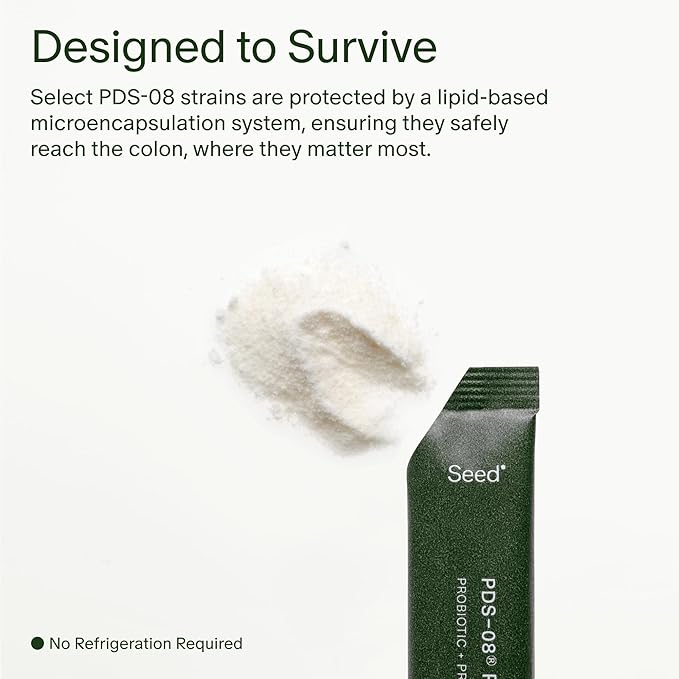 Seed PDS-08 Pediatric Daily Synbiotic - Fiber-Based Prebiotic & Probiotic for Kids - Digestive Health, Regularity, Constipation Relief - Ages 3-17 - Vegan and Shelf-Stable - 30 Sachets (30-Day Supply)