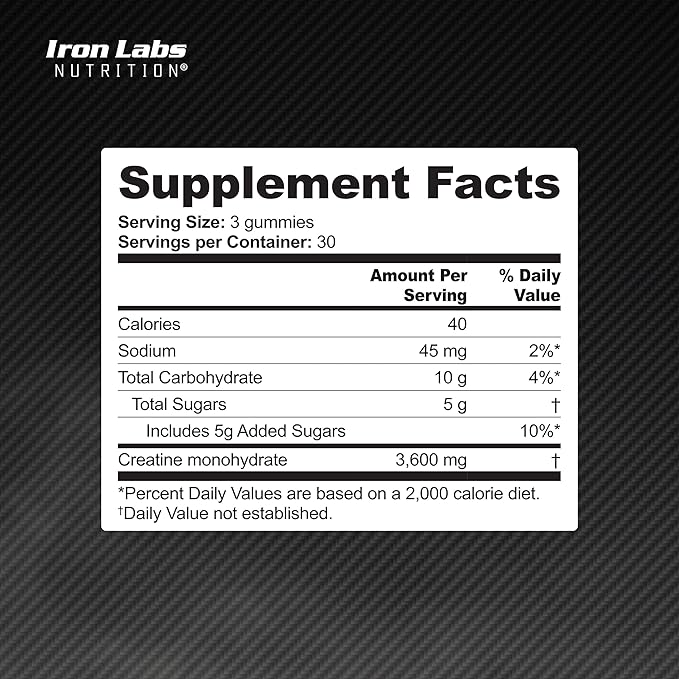 - Creatine Monohydrate in Tasty Gummies for Men & Women - A creatine supplement from trusted sports-nutrition brand Iron Labs Nutrition, developed for serious fitness enthusiasts, bodybuilders, and male and female athletes.
