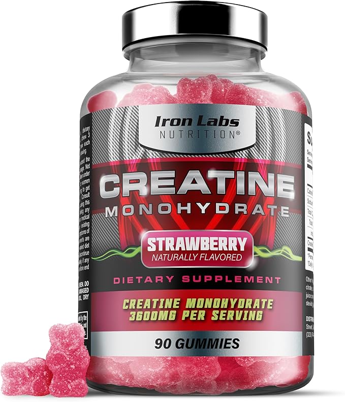Iron Labs Nutrition Creatine Monohydrate (90 Gummy Bears) - 3600mg Per Serving - Strawberry Flavor - High Strength Creatine for Men & Women (90 Vegan Gummies)