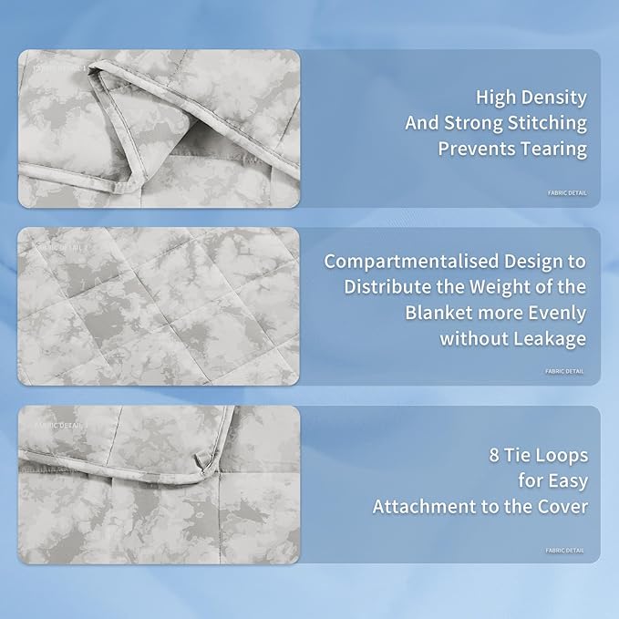 - 【Precise positioning technology of glass beads】- We have observed that for weighted blankets, the biggest problem is that as the beads move in the blanket, the weight becomes more and more uneven. To solve this problem, we designed a professional tool to fill glass beads. This tool makes the beads evenly distributed in the blanket. At the same time, we use high-strength sewing thread, which is very strong to ensure that the beads will not enter another area from one area during use of blanket.