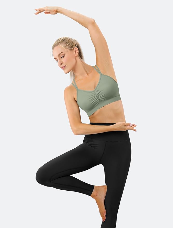 • Dual Thin Straps & Cross Back:Two slim straps of criss cross back sports bra evenly distribute shoulder weight, while the crisscross back boosts workout stability and complements open-back outfits.