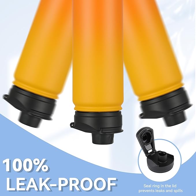 HASLE OUTFITTERS Insulated Water Bottle 22 oz Double Wall Stainless Steel Water Bottle Wide Mouth with Straw Lid & Spout Lid Keeps Cold or Hot(Yellow Orange Gradient,1)
