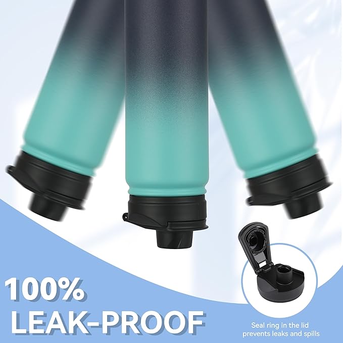 HASLE OUTFITTERS Insulated Water Bottle 22 oz Double Wall Stainless Steel Water Bottle Wide Mouth with Straw Lid & Spout Lid Keeps Cold or Hot(Green Blue Gradient,1)