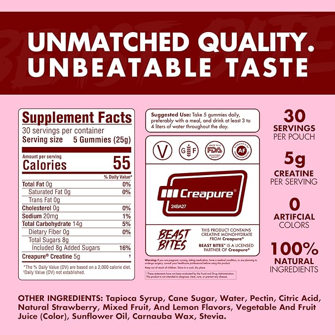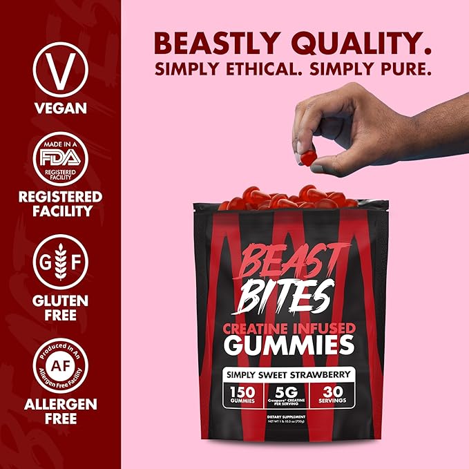 BEAST BITES - Creatine Infused Gummies - 5g Creapure Creatine Monohydrate Per Serving - NSF Certified for Sport - 30 Servings