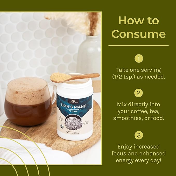 - 🎯 NATURAL FOCUS SUPPORT FOR DAILY USE: Our Lion's Mane powder is formulated to support concentration—easily mix 1 teaspoon into coffee, tea or smoothies for natural mental performance