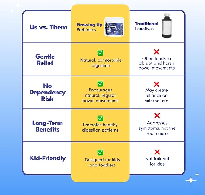 - ๐๐๐๐ ๐๐๐๐ ๐๐๐๐๐ ๐๐๐ ๐๐๐๐๐ : Our gentle blend prebiotic powder for children is meticulously formulated to promote comfortable bowel movements and alleviate any associated discomfort. A nurturing support for sensitive tummies, providing a tear-free potty experience for infants and toddlers aged one year and older.