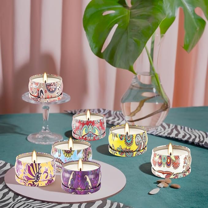 - Portable Jar Candles: Each scented candle comes in a tin with beautiful at pattern, suitable for decorating your house.These tin can be reused to store small accessories. Mini design, easy to carry.