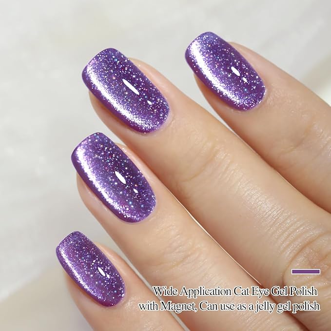 Double Rhythm Cat Eye Gel Polish with Magnet 15ML Jelly Glass Holographic Glitter Shimmer Translucent Sheer Color Magnetic Gel Polish Salon DIY at Home (Dark Purple-MC1066)