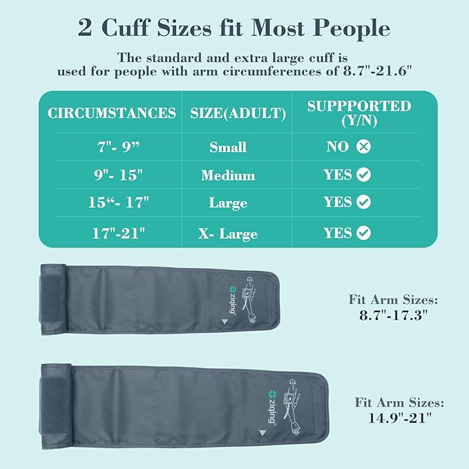 - 【2 Cuffs Size】 This high blood pressure monitor is suitable for standard(22-44cm) and extra large adult arms(38-55cm)