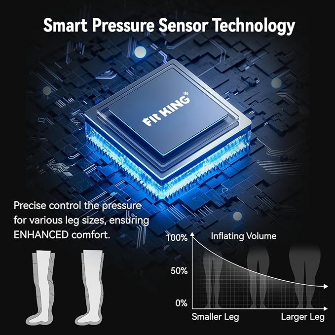 - Professional Customization: FIT KING full leg recovery boots offer 12 adjustable pressure settings (40-150 mmHg), 10 time intervals (15-60 mins), and 4 zone controls (foot, lower calf, upper calf, thigh) with 3 air compression therapy modes. The all-in-one controller supports zone-specific, full legs, or single-leg massages, allowing you to customize recovery sessions to meet your specific needs and those of your entire family