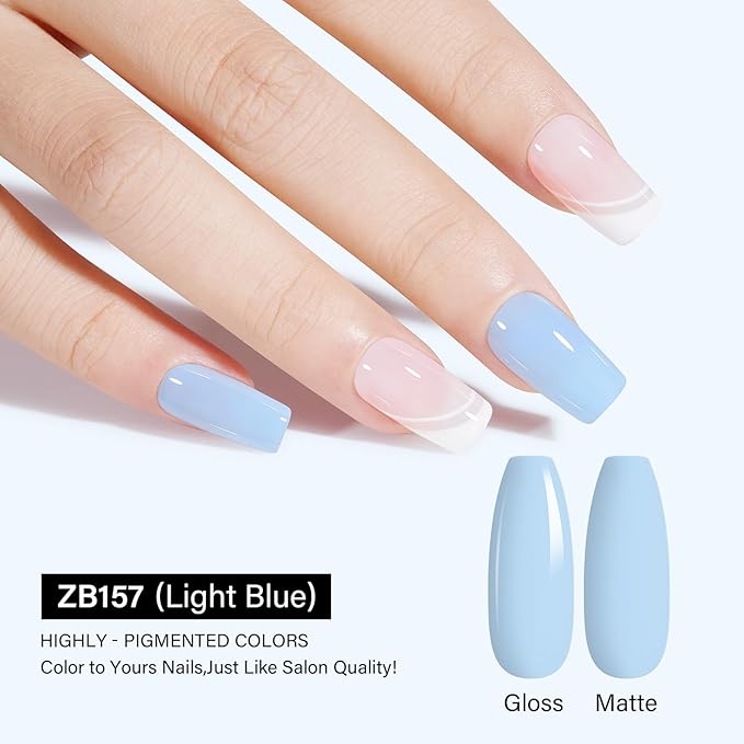 - 【Vibrant Pastel Nail Polish】: Baby blue gel nail polish suitable for spring and summer was upgraded to 15ml, and the formula was upgraded, Its lighter texture ensures seamless application; Sky blue gel nail polish represents youth and vitality, you can also use different colors to match, which is a dating magic weapon that can easily show girls' playful charm!
