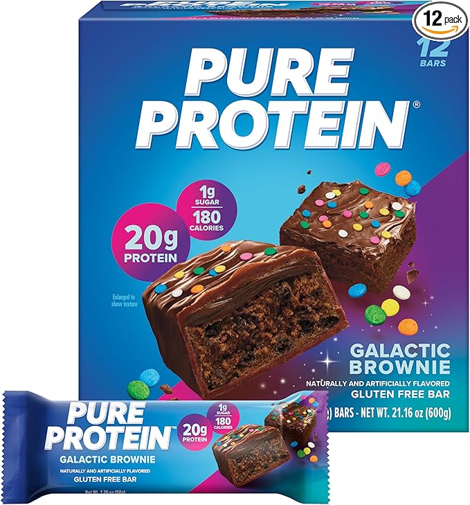 Pure Protein Galactic Brownie Bars - 12 Count Box | 20g High Protein, Gluten-Free, On-the-Go Snack | Ideal Pre & Post-Workout Fuel | Low Sugar, Great Taste!