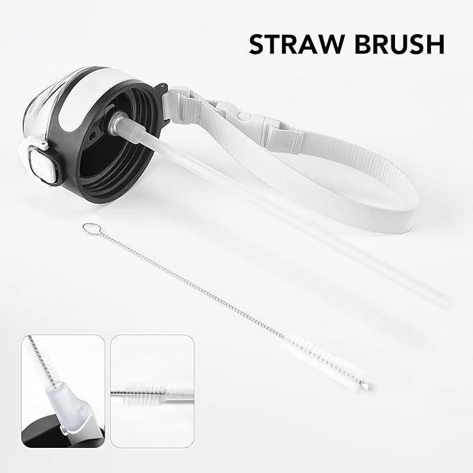 - Humanized Design: The one-hand operation button allows for easy access to water. Highly suitable for boys and girls, and all ages. The flip-top lid of the insulated bottle is used a secure lock, making it dust-free and leak-proof. The included straw brush makes maintaining your bottle's cleanliness uncomplicated and efficient.