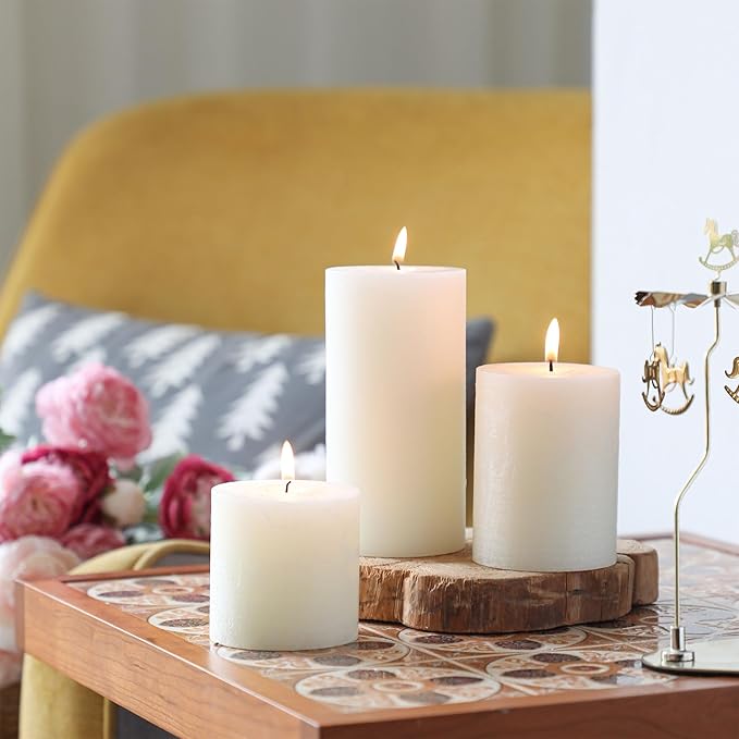- [Unscented Candle Set]: Our unscented pillar candles are smokeless, dripless, give off a beautiful glow, and are friendly to those with fragrance sensitivities. Dripless pillar candles are perfect for creating a cozy atmosphere during romantic dinners, family gatherings, holiday celebrations, and relaxing moments.