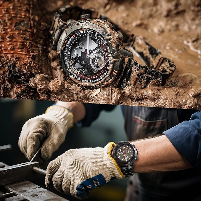 - 【5ATM SWIM-PROOF, OUTDOOR-READY】– 5ATM waterproof for swimming; compass for hiking and trail use. Handy tools for daily and travel: stopwatch, alarm, world time, flashlight, SOS, calculator, camera shutter, find phone. (Lab-tested for cold and impact; do not attempt extreme tests.)