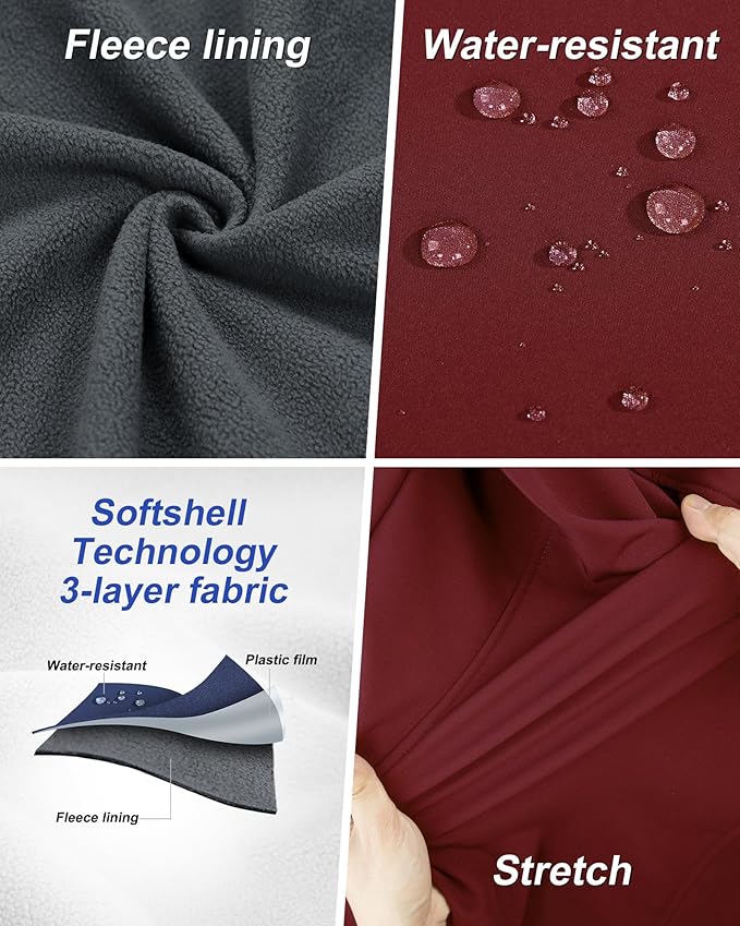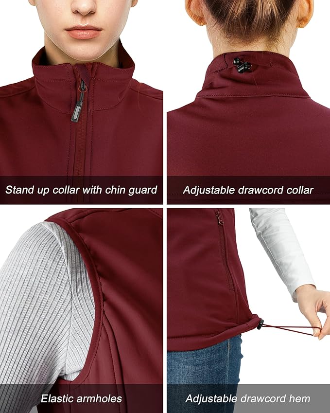 • Windproof & Water-resistant Fleece-lined Softshell Vest---- The outer fabric sheds water and blocks wind well while retaining heat with the soft cozy fleece backing, helping you stay warm without being weighed down.