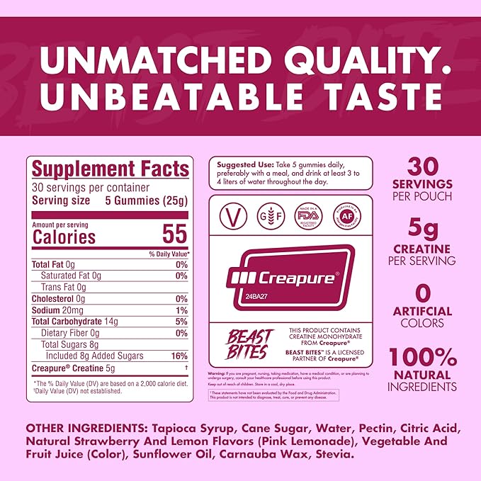 BEAST BITES - Creatine Infused Gummies - 5g Creapure Creatine Monohydrate Per Serving - NSF Certified for Sport - 30 Servings