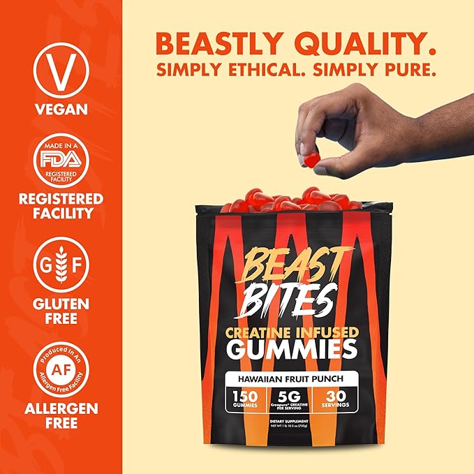 BEAST BITES - Creatine Infused Gummies - 5g Creapure Creatine Monohydrate Per Serving - NSF Certified for Sport - 30 Servings