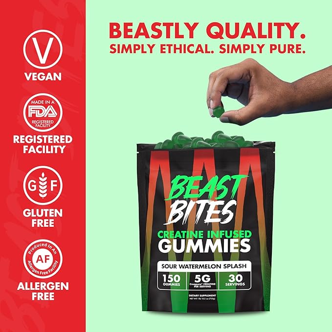 BEAST BITES - Creatine Infused Gummies - 5g Creapure Creatine Monohydrate Per Serving - NSF Certified for Sport - 30 Servings
