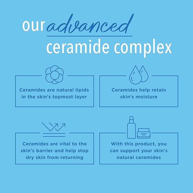 - DRY SKIN RELIEF - With Advanced Ceramide Complex, the lotion restores skin's ceramide levels to help retain moisture and prevent symptoms of dry, damaged skin from returning