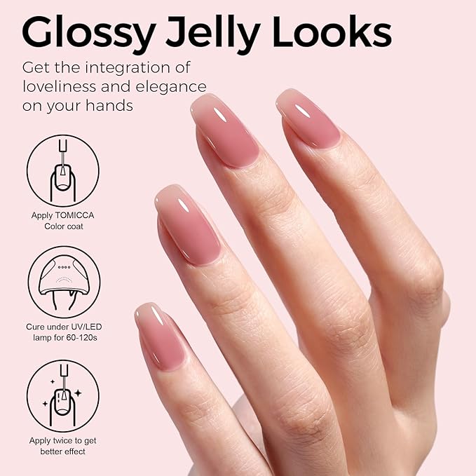 - 【Easy Application & High Cost Performance】:With the unique 150-wide-angle width simple sliding brush of TOMICCA jelly gel nail polish, no brush marks, It has a high color saturation, you can freely DIY various nail styles, such as lines, chessboards, patterns and other French nails.You can get beauty glossy nail art in just 10 minutes for one-tenth the price