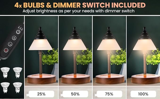- Innovative Design: Enjoy the perfect combination of aesthetics and functionality with our unique candle-warming lamp that includes three bulbs, a timer, and a dimmer with four options.