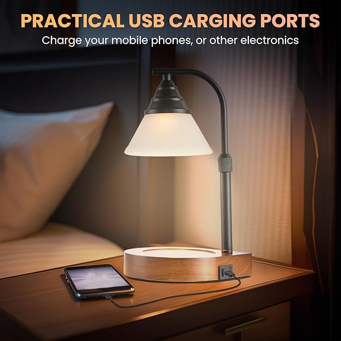 Candle Warmer Lamp New Modern Teardrop Style (4 Bulbs, Dimmer/Timer, Adjustable Pole, USB A&C Charging Ports)-Soft Brightness-Creates Ambience-Giftbox Included