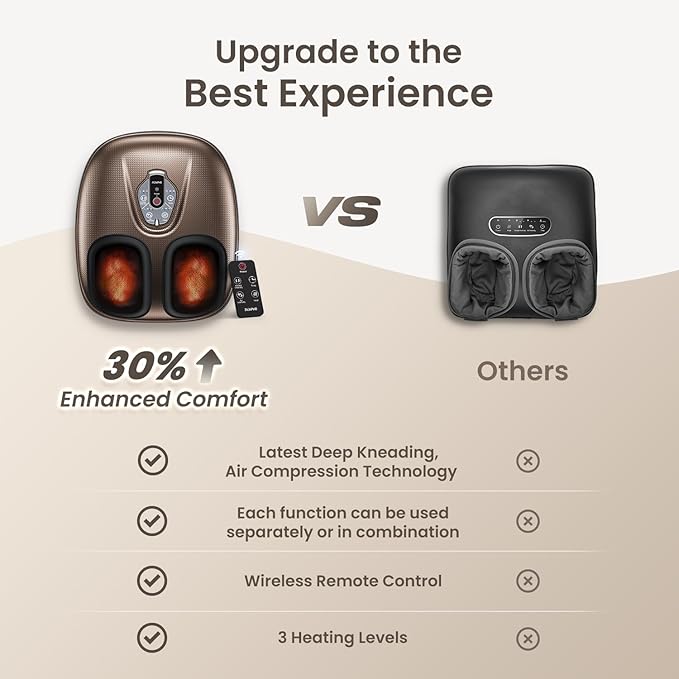 - Genuine Professional Foot Massage in 2025: RENPHO 2025 Version Foot Massager Machine is meticulously crafted with insights from 300+ massage therapists. Exclusive deep kneading and compression technology increases the comfort of foot massage by 30%, with 360-degree wraps to relax your feet