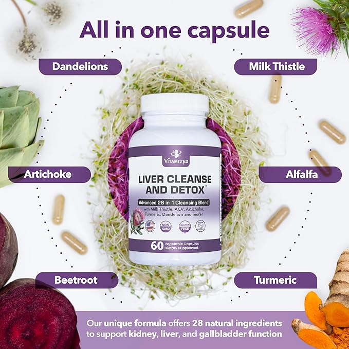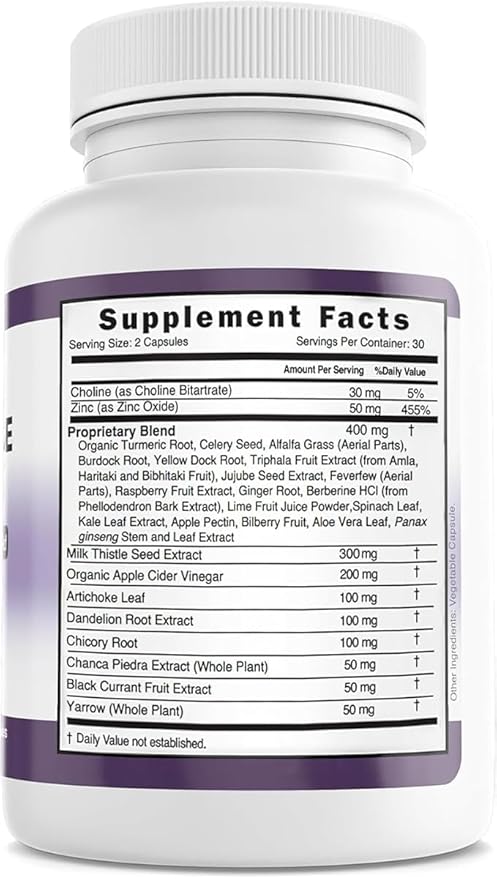 - The only liver supplement you will ever need: A scientifically formulated blend of 100% natural milk thistle liver detox, dandelion root, artichoke extract, apple cider vinegar, chicory root, burdock root, turmeric, celery seed, alfalfa grass, ginger root & more, a 28-1 blend all needed for liver care and a rich source of minerals and liver vitamins.