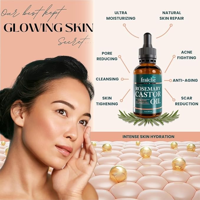 Live Fraiche Rosemary Castor Oil for Hair Growth 4 Ounce - Cold Pressed Castor Oil and Rosemary Oil for Damaged Hair to Reduce Hair Loss