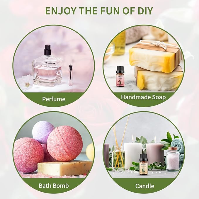 - Variety Uses & Applications: Suitable for diffuser, clean, spa massage, perfume, home, bedroom, living room, bathroom,office, aromatherapy, outdoors, soap or candle making, yoga room, and car,etc.