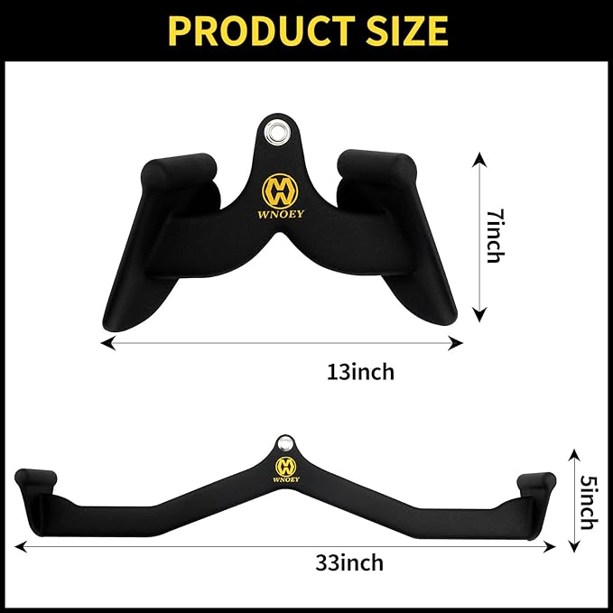 - 【HIGH QUALITY】 :You will receive two pull-down bar,size 33""X6.5"" and 13""X5,LAT Pulldown Attachments is made of high-quality solid steel, and the exterior is coated with thickened rubber coating, Ergonomic handle design than other traditional round lat bar handles, focus on the targeted back muscle group.