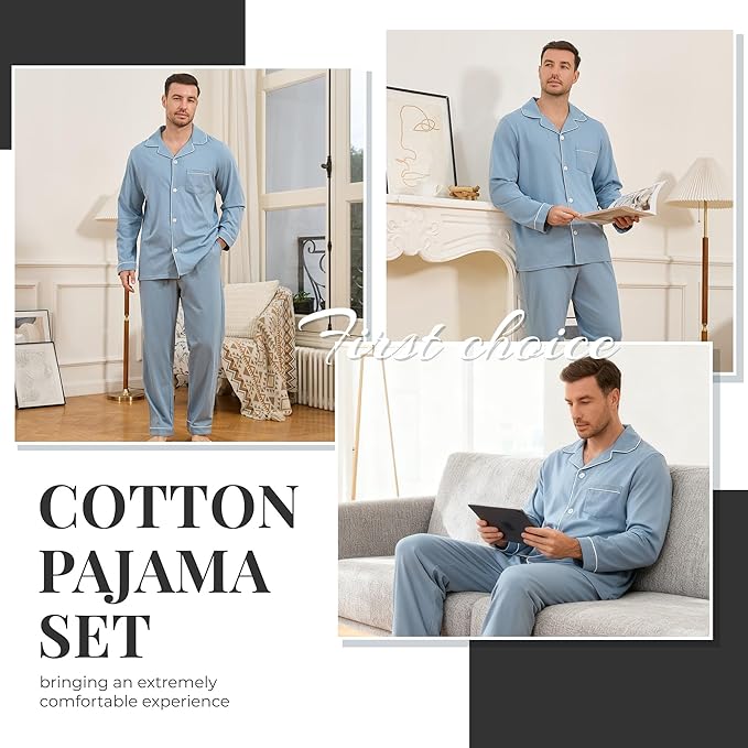 - ❤100% Cotton Pajama set: This super soft, lightweight, breathable and versatile mens pajama set made from 100% cotton material provides ultimate comfort whenever in use. Enjoy the comfort and softness of this lightweight mens lounge pjs set while relaxing, lounging around, hitting the sheets or in a good part of your daily routine.
