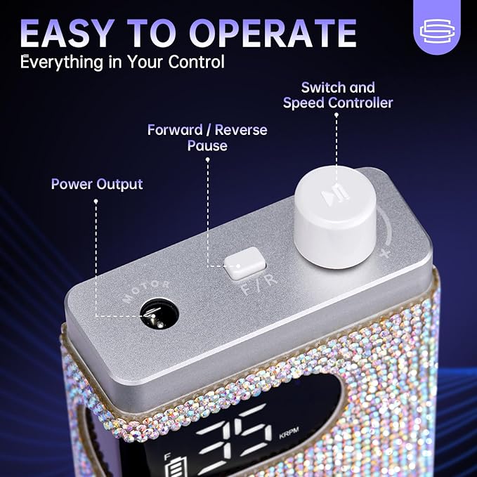 - 【Easy to Use】This nail drill offers effortless mobility. The user-friendly rotary switch allows for easy speed adjustment, and the F/R button switches the rotation direction. Enjoy the simplicity and ease of operation with this nail drill