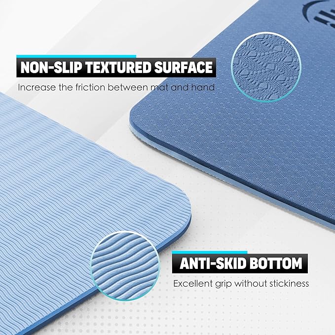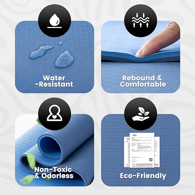 - Upgraded TPE Material: Crafted from premium TPE material, this big home gym mat is free from phthalates and has no unpleasant smell. Compared to NBR and PVC mat, TPE has a nice density. It provides ample cushioning without excessive sinking, aiding in the maintenance of balance during your practice.