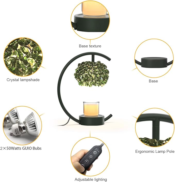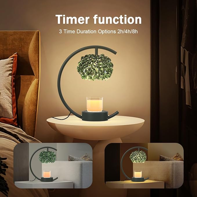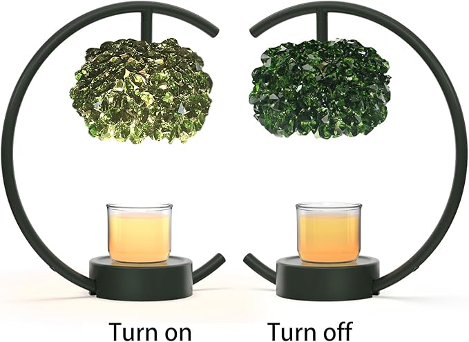 Candle Warmer Lamp for Jar Candles with Adjustable Brightness&Timer,Handcrafted Green Crystal Candle Lamp Luxurious Design+2Bulbs,Home Decoration Electric Candle lamp(Balck C-Shaped)
