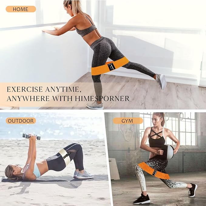 - 【What You Get】: 3 fabric resistance bands of different colors and resistance, 2 hair ties for tying hair, Soft tape measure for measuring body measurements, portable travel carry bag and instruction guide.
