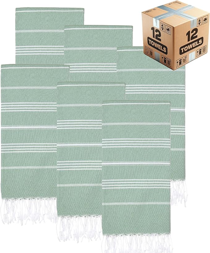 Turkish Beach Towels, Bulk Case of 12 | Oversized, Quick Dry, Sand Free | 100% Cotton, Large 38x71 Towels for Beach, Pool, Travel | Ultra-Soft, Compact, Absorbent | Light Green