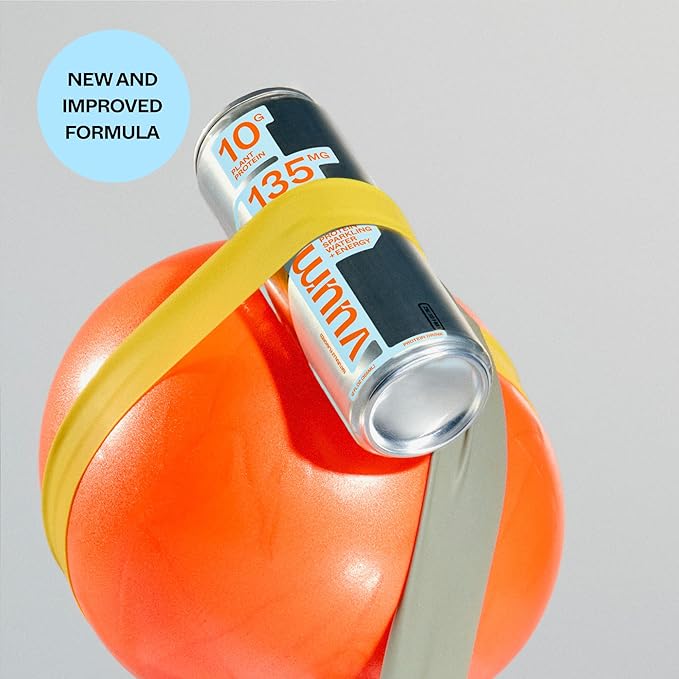 VUUM Sparkling Clear Protein Drink - 10g Plant Protein, Natural Pre Workout Energy Drink, Plant Based, Natural Caffeine, Sugar-Free Protein Drink - White Peach Ginger, 12 Fl Oz (12 Pack)