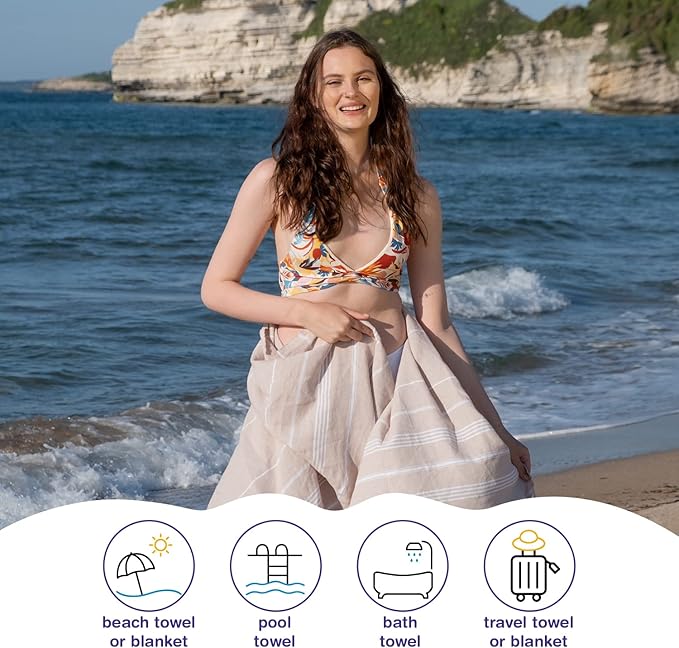 - TRAVEL LIGHT, DRY FAST: Elevate your travel experience with our refined Turkish towels. Thinner than standard terrycloth yet equally absorbent and astonishingly compact, they slide easily into any bag. Perfect for post-shower or beach use, our towels merge a space-saving design with reliable absorption, ensuring comfort during every adventure.