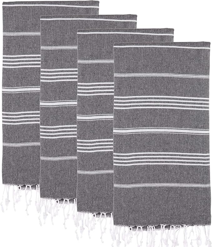Turkish Beach Towels, Pack of 4 | Oversized, Quick Dry, Sand Free | 100% Cotton, Large 38x71 Towels for Beach, Pool, Travel | Ultra-Soft, Compact, and Absorbent | Black
