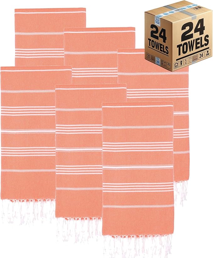 Turkish Beach Towels, Bulk Case of 24 | Oversized, Quick Dry, Sand Free | 100% Cotton, Large 38x71 Towels for Beach, Pool, Travel | Ultra-Soft, Compact, Absorbent | Orange
