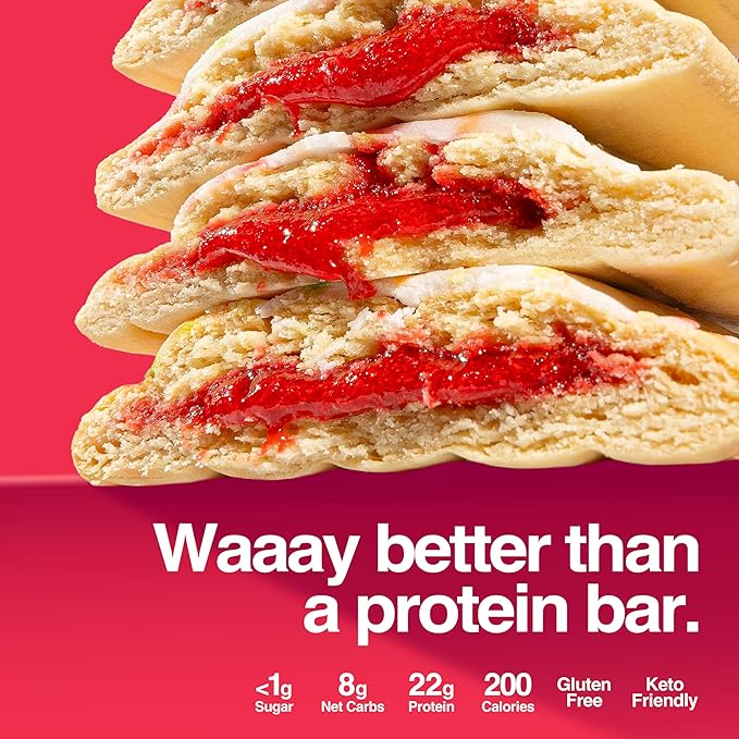 - High-Protein, Low-Carb Keto Snacks - Packed with 22g of protein and only 6g net carbs, these keto snacks are the perfect protein bars for a guilt-free treat. With zero added sugar and gluten free ingredients, they’re ideal for those on a low sugar, low calorie, or diabetic snacks plan. Each pastry offers a satisfying tasty healthy snack experience for adults on the go. Available subscribe and save subscriptions!