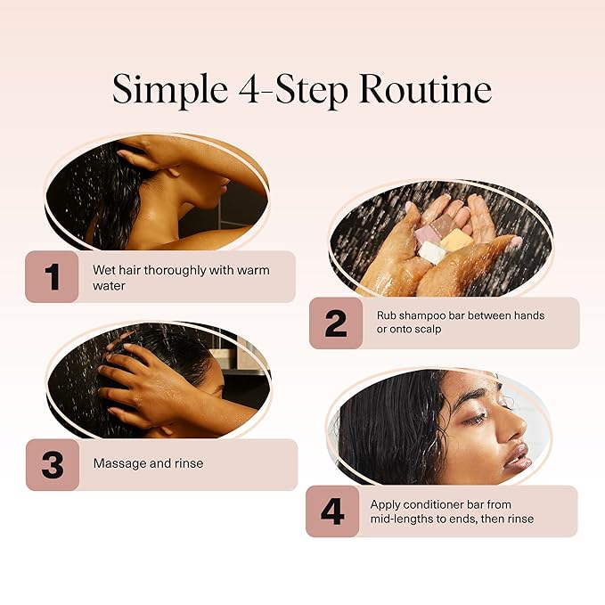 - COMPLETE SHAMPOO AND CONDITIONER SET – Upgrade your hair wash routine with this 4-piece sampler featuring our best-selling shampoo bar and conditioner bar. A convenient way to discover your favorites while reducing single-use plastic.