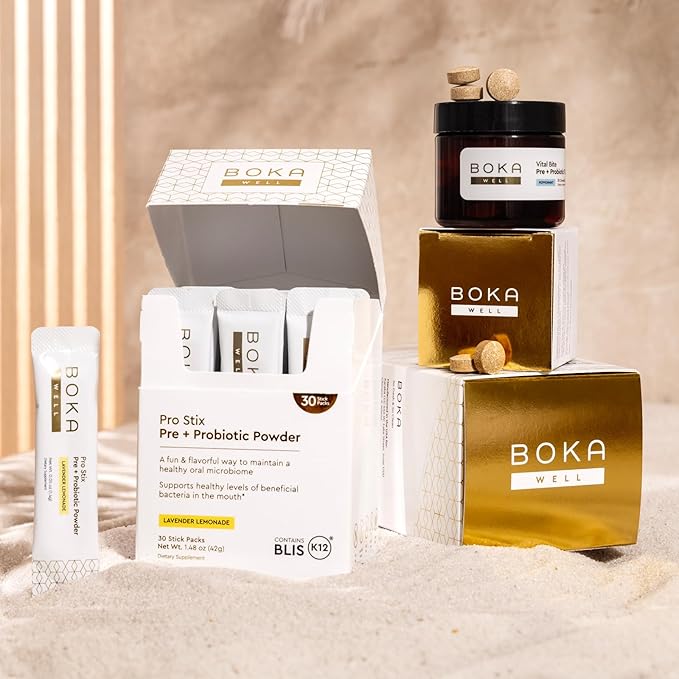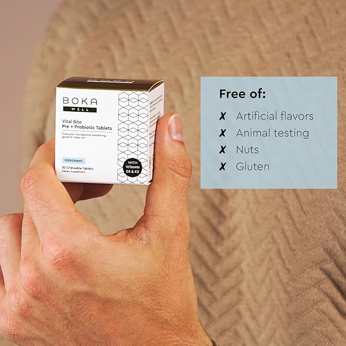 Boka Vital Bite Oral Pre + Probiotics - Sugar-Free Nut-Free Chewable Dental Probiotics for Teeth and Gums with BLIS K12, Vitamin D3 K2 for Men Women, Freshens Breath - Peppermint, 30 ct