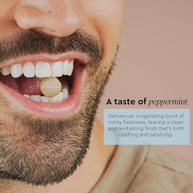 - All-Natural, Soothing Formula - Our oral probiotics for mouth bad breath use natural peppermint flavor and organic xylitol. These nut-free, sodium-free mouth probiotics contain soothing chamomile. A refreshing chewable probiotic perfect for daily use to maintain oral health.