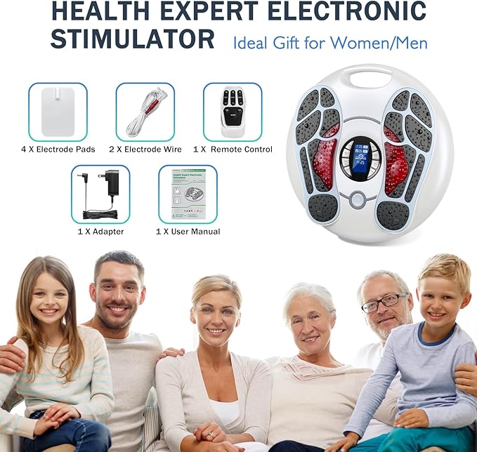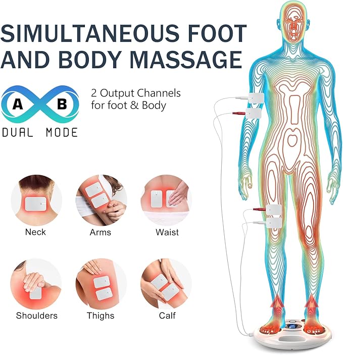 - Suitable for multiple parts of the body : The Foot Massager instrument is also equipped with four additional electrode patches to help relieve pain in body parts, such as hands, neck, waist, legs, and electrode rubber pads