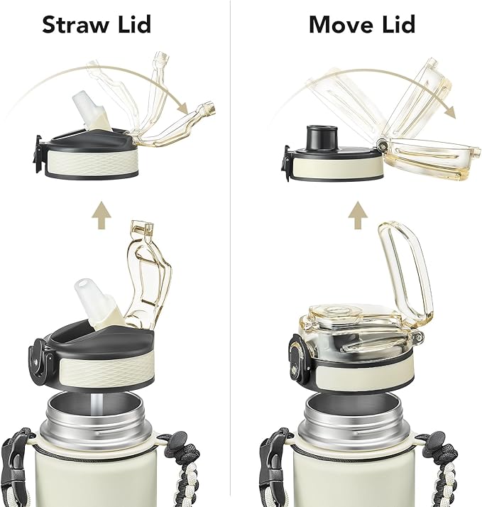 - Insulated water bottle 24 oz: 24 oz insulated water bottle has a matte finish and comes with 2 lids (Lid with Straw/No Straw) and a Paracord handle for easy portability; Its wide mouth makes it easy to fill, pour, and clean, and the leak-proof cap ensures worry transport.